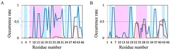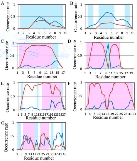 - Kabsch, W.; Sander, C. Dictionary of protein secondary structure: Pattern recognition of hydrogen-bonded and geometrical features. Biopolymers 1983, 22, 2577–2637. [Google Scholar] [CrossRef] [PubMed]