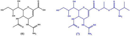 Chemical structures of zanamivir (6) and its valine ester prodrug (7).