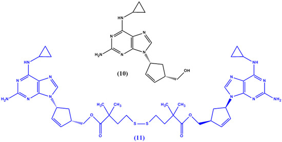 Chemical structures of abacavir (10) and its dimer prodrug 11.