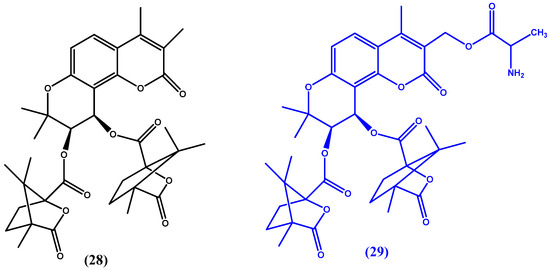 - Xie, L.; Yu, D.; Wild, C.; Allaway, G.; Turpin, J.; Smith, P.C.; Lee, K.-H. Anti-aids agents. 52. Synthesis and anti-hiv activity of hydroxymethyl (3′R,4′R)-3′,4′-di-O-(s)-camphanoyl-(+)-cis-khellactone derivatives. J. Med. Chem. 2004, 47, 756–760. [Google Scholar] [CrossRef] [PubMed]