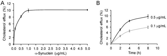 2.2. α-Synuclein Mediates Cholesterol Efflux in a Dose- and Time-Dependent Manner