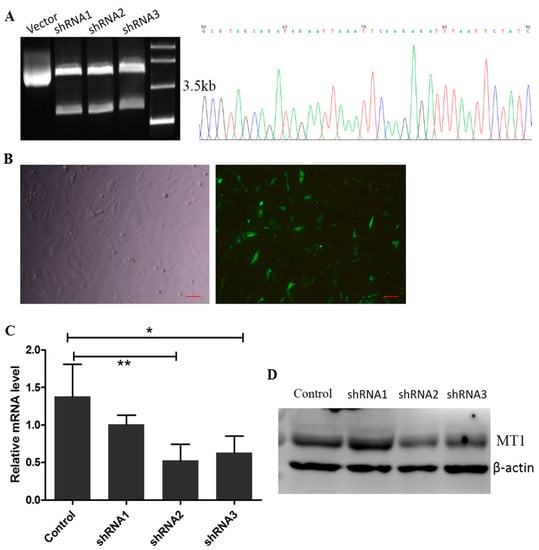 2.3. Construction of the Interference Fragment of MT1 Using Plasmid DNA
