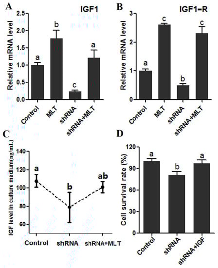 2.6. Effects of MT1 Knock-Down on IGF/IGF1-R Signaling
