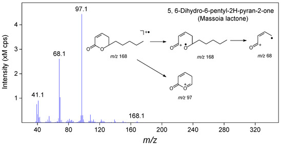 - Takeoka, G.R.; Wong, R.Y.; Dao, L.; Felker, P. Identification of 5,6-dihydro-6-propyl-2H-pyran-2-one as the major volatile constituent in mesquite (Prosopis) flour. Food Chem. 2009, 115, 1025–1027. [Google Scholar] [CrossRef]