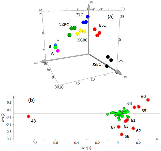 - Lv, S.D.; Wu, Y.S.; Wei, J.F.; Lian, M.; Wang, C.; Gao, X.M.; Meng, Q.X. Application of gas chromatography-mass spectrometry and chemometrics methods for assessing volatile profiles of Pu-erh tea with different processing methods and ageing years. RSC Adv. 2015, 5, 87806–87817. [Google Scholar] [CrossRef]