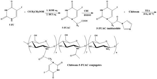 Preparation of chitosan-1-acetic acid-5-fluorouracil (CS-FUAC) conjugates.