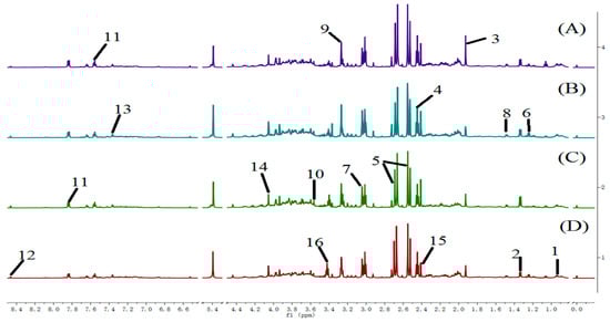| Metabolites | Chemical Shift (ppm) | Control Group | Cinnabar Group | Coptis chinensis Group | Berberine Group |