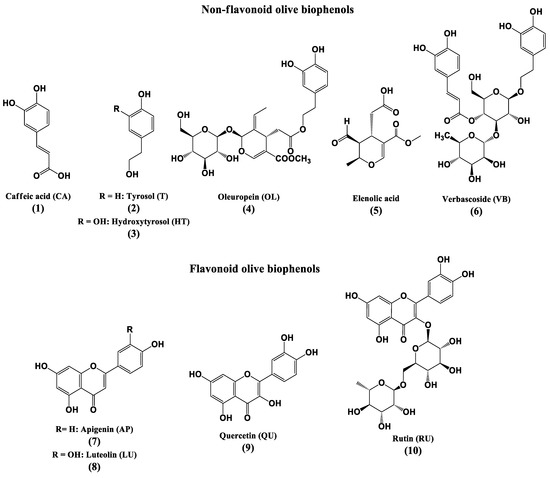 Structures of the major non-flavonoid and flavonoid olive biophenols.