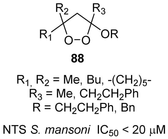 1,2-Dioxolanes 88 exhibiting high activity against schistosomiasis.