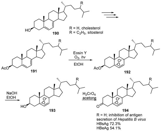 - Barton, D.H.R.; Leclerc, G.; Magnus, P.D.; Menzies, I.D. An unusual synthesis of ergosterol acetate peroxide. J. Chem. Soc. Chem. Commun. 1972, 447–449. [Google Scholar] [CrossRef]