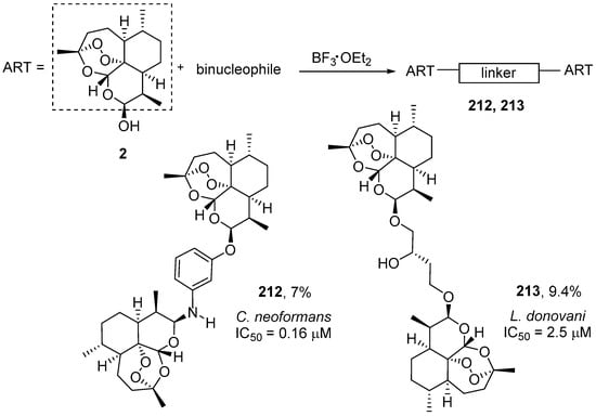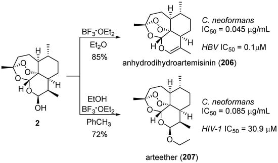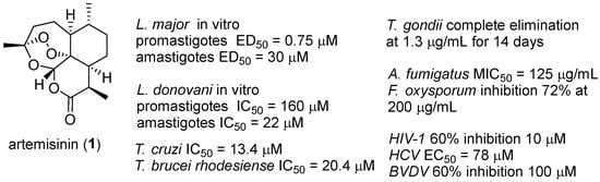- Galal, A.M.; Ross, S.A.; Jacob, M.; ElSohly, M.A. Antifungal activity of artemisinin derivatives. J. Nat. Prod. 2005, 68, 1274–1276. [Google Scholar] [CrossRef] [PubMed]