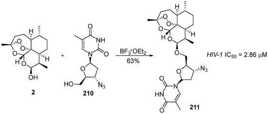 - Jung, M.; Schinazi, R.F. Synthesis and in vitro anti-human immunodeficiency virus activity of artemisinin (qinghaosu)-related trioxanes. Bioorg. Med. Chem. Lett. 1994, 4, 931–934. [Google Scholar] [CrossRef]