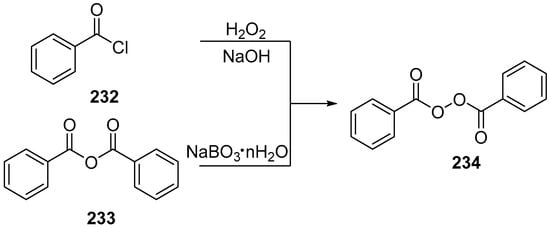 - Her, B.; Jones, A.; Wollack, J.W. A three-step synthesis of benzoyl peroxide. J. Chem. Educ. 2014, 91, 1491–1494. [Google Scholar] [CrossRef]