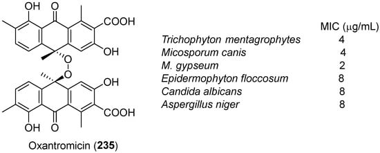 - Wright, J.J.K.; Merill, Y.; Puar, M.S.; McPhail, A.T. Structure of oxanthromicin (antibiotic 16-550), a novel dimeric anthrone peroxide. J. Chem. Soc. Chem. Commun. 1984, 473–474. [Google Scholar] [CrossRef]