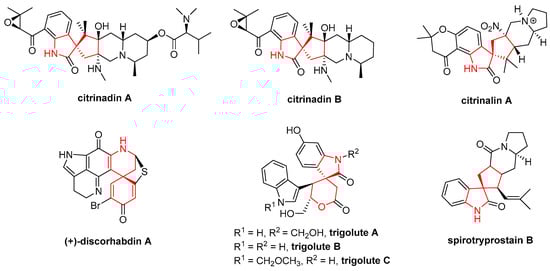 - Galliford, C.V.; Scheidt, K.A. Pyrrolidinyl-spirooxindole natural products as inspirations for the development of potential therapeutic agents. Angew. Chem. Int. Ed. Engl. 2007, 46, 8748–8758. [Google Scholar] [CrossRef] [PubMed]