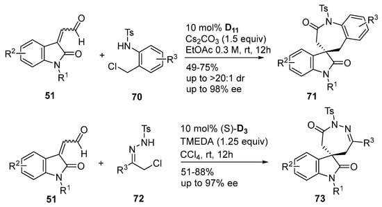 2.2. Synthesis of Chiral Spiroheterocycles via NHC-Catalyzed Reactions
