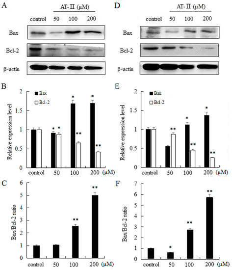 2.5. AT-II Regulates the Protein Expression Levels of Bax and Bcl-2