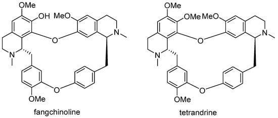 The structure of fangchinoline and tetrandrine.