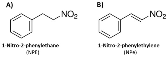 - Gottlieb, O.R.; Magalhães, M.T. Occurrence of 1-nitro-2-phenylethane in Ocotea pretiosa and Aniba canelilla. J. Org. Chem. 1959, 24, 2070–2071. [Google Scholar] [CrossRef]