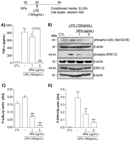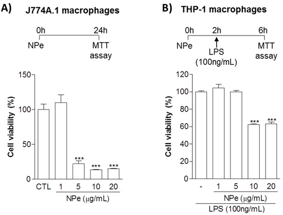 3.2. Pre-Treatment of THP-1 Differentiated Macrophages with Non-Toxic Doses of NPe Has Anti-Inflammatory Effects
