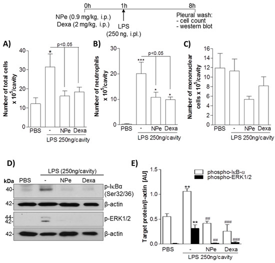 3.3. Pre-Treatment of LPS-Inflamed Mice with NPe Reduces Neutrophil Accumulation and Inflammatory Markers