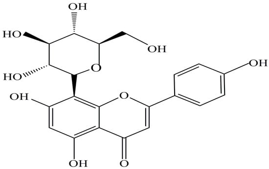 Vitexin (apigenin-8-C-glucoside, as shown in Figure 1) is a naturally occurring flavone glucoside, which was found in many medicinal plant species such as Crataegus pinnatifida [1], Cajanus cajan [2], Livistona chinensis [3], Mimosa pudica [4], Phyllostachys edulis [5], and Trollius chinensis [6]. Vitexin has received increasing attention due to its various pharmacological effects, such as antihypotensive, anti-inflammatory, anticancer, antispasmodic, antimicrobial, antioxidant, antithyroid and antiarteriosclerotic effects [7,8]. It is also used for heart disease prevention [9].