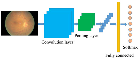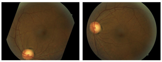 The number of people diagnosed as having diabetes has increased dramatically over the last several decades, and diabetes increases the risk of a range of eye diseases, of which diabetic retinopathy is one of the most severe [1]. Moreover, diabetic retinopathy is the main cause of blindness in the mid-age population [2]. Despite sustained efforts having been made, early detection of diabetic retinopathy is a time-consuming process even for a well–trained clinician, which may result in delayed treatment, miscommunication, etc. The importance of an automatic method for diabetic retinopathy detection has been recognized. In our study, we focus on the classification of retinal images into normal images and diabetic retinopathy images (sample frames used for our classification problem are given in Figure 1). Previous efforts using image feature extraction and machine learning methods made good progress. The features used for the classifiers include hard exudates [3,4], red lesions [5], micro-aneurysms and blood vessel detection [6], etc., while the classifiers used for the task contain neural networks, sparse representation classifiers, linear discriminant analysis (LDA), support vector machine (SVM), k-nearest neighbors (KNN) algorithm and so on. However, none of the handcrafted features can cover all the symptoms of diabetic retinopathy in the images, and a large fraction of cases turn out to be normal while much time has been spent diagnosing normal cases. Consequently, the practical clinical applications of the automatic diagnosing system are limited.