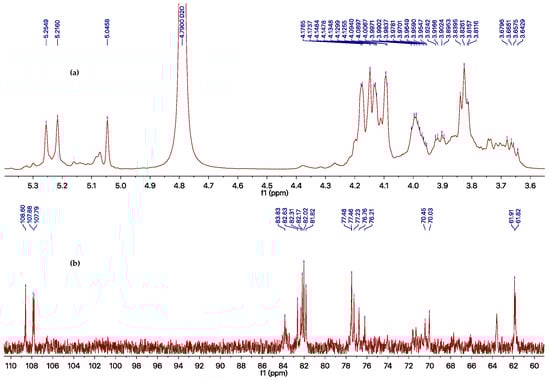 1H- (a) and 13C- (b) NMR spectra of impure galactan in D2O.
