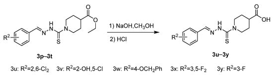 Compounds 3u–3y were prepared from compounds 3p–3t through the hydrolysis reaction at room temperature in the NaOH aqueous solution (Scheme 3).