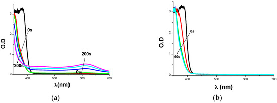 The following Light Emitting Diodes (LEDs) were used as irradiation sources: (i) LED@375 nm—incident light intensity at the sample surface: I0 ≈ 40 mW cm−2; (ii) LED@405 nm (I0 ≈ 110 mW cm−2).