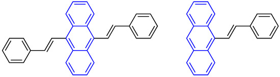 The structures of distyrylanthracene (left) and mono-functionalize anthracene (right).
