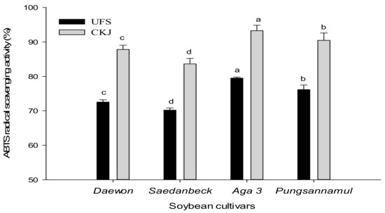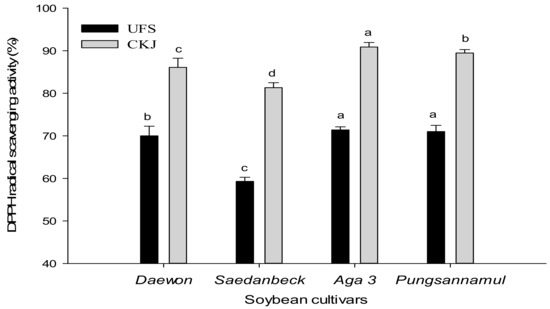 2.2. Antioxidant Activity of Unfermented Soybeans and Cheonggukjang