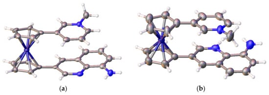 - Bohn, R.K.; Haaland, A. On the molecular structure of ferrocene, Fe(C5H5)2. J. Organomet. Chem. 1966, 5, 470–476. [Google Scholar] [CrossRef]