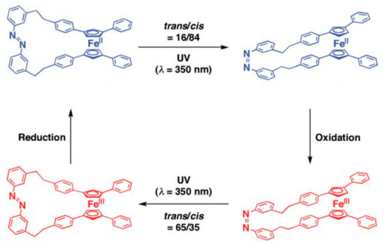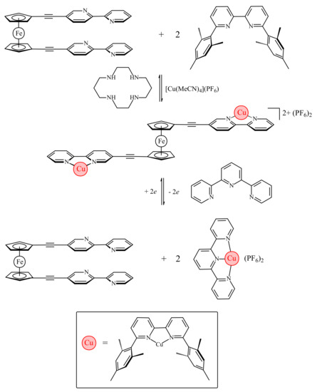 - Scottwell, S.Ø.; Crowley, J.D. Ferrocene-containing non-interlocked molecular machines. Chem. Commun. 2016, 52, 2451–2464. [Google Scholar] [CrossRef] [PubMed]
