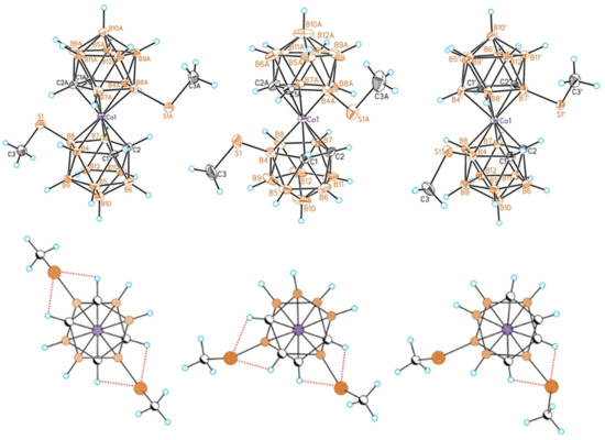 - Anufriev, S.A.; Erokhina, S.A.; Suponitsky, K.Y.; Godovikov, I.A.; Filippov, O.A.; Fabrizi de Biani, F.; Corsini, M.; Chizhov, A.O.; Sivaev, I.B. Methylsulfanyl-stabilized rotamers of cobalt bis(dicarbollide). Eur. J. Inorg. Chem. 2017, 4444–4451. [Google Scholar] [CrossRef]