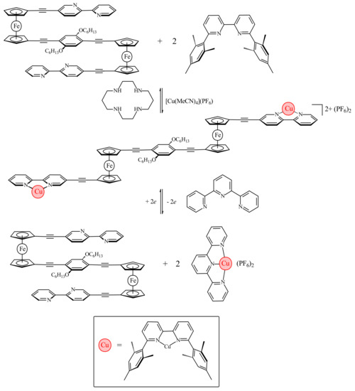 - Scottwell, S.Ø.; Barnsley, J.E.; McAdam, C.J.; Gordon, K.C.; Crowley, J.D. A ferrocene based switchable molecular folding ruler. Chem. Commun. 2017, 53, 7628–7631. [Google Scholar] [CrossRef] [PubMed]