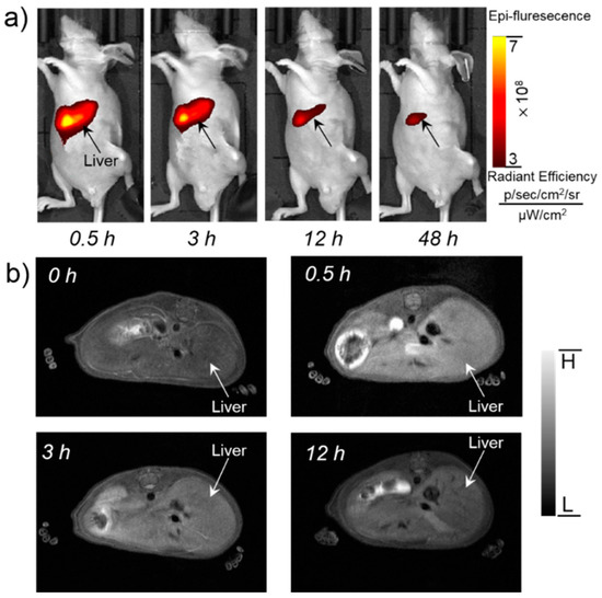 2.3. In Vivo FI/MRI Imaging and Biodistribution Studies