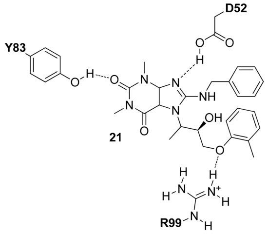 11, due to the presence of the morpholine cycle that forms polar interactions with the guanidine moiety of the residue justifying the improved activity with respect to the parent compound. Compound