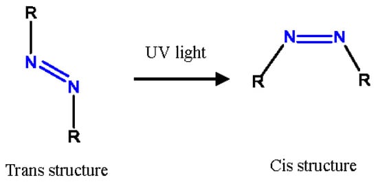 - Wang, L.X.; Wang, X.G. Progress of the trans-cis isomerization mechanism of azobenzene. Chemistry 2008, 71, 243–248. [Google Scholar] [CrossRef]