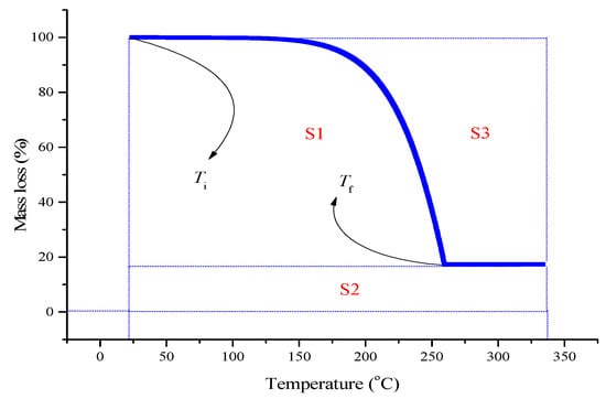 where A° and K° is the proportion of mass loss. Ti and Tf are the mass loss at the initial temperature and final temperature, respectively. S1, S2, and S3 are different partitioned regions. S1 is the thermogravimetric area under the TG curve; S2 is the thermogravimetric area of the non-mass loss; and S3 is the thermogravimetric area above the TG curve. The schematic diagram of IPDT is shown in Figure 9.