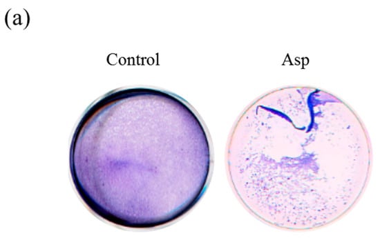 To investigative whether the Asp involved the cell disruption process of Acanthamoeba, we isolated the Asp of NCKH_D to treat the C6 cells and observed by CPE assay and time-lapse microscopy. The results of CPE assay were shown that the Asp of NCKH_D could disrupt the co-incubated C6 cells (Figure 3a,b). We observed that the Asp of Acanthamoeba NCKH_D induced the cell adhesion losing ability in a time-dependent manner (Figure 3c).