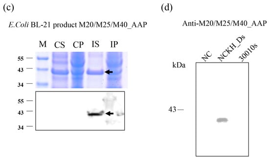 NCKH_D was washed with PAS twice and then scraped and collected. The pellet was incubated with lysis buffer for 5 min at 4 °C. Lysed samples were centrifuged at 15,900× g at 4 °C for 5 min. Protein samples were separated with 10% SDS-PAGE (T-Pro, Taipei, Taiwan) were used to separate total proteins. Proteins were then transferred onto the PVDF membranes (Merck Millipore, Darmstadt, Germany). 5% non-fat dry milk in 0.5% PBS-T was used to block the membranes. Immune complexes were formed by incubation of the proteins with our polyclonal antibody against M20/M25/M40 superfamily aminopeptidase overnight at 4 °C. After incubation with primary antibodies, membranes were washed and incubated for 1 h with HRP-tagged secondary antibody (1:10,000; Abcam, Cambridge, UK). Immunoreactive protein bands were detected using Biospectrum 600 Imaging System (UVP, Jena, Germany).