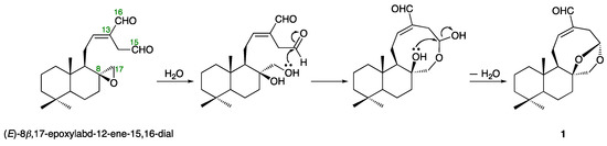 - Grant, P.K.; Weavers, R.T. Diterpene chemistry—IV transformations of 8,(17)-labdadien-13-ol. Tetrahedron 1974, 30, 2385–2395. [Google Scholar] [CrossRef]