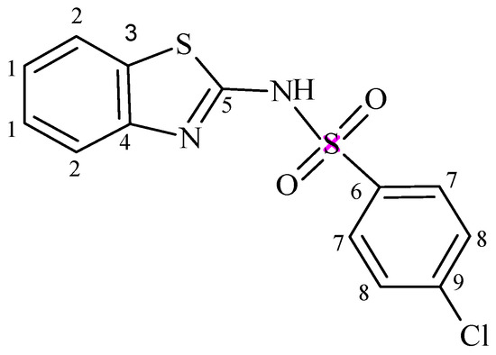3.2. Synthesis of N-(Benzothiazol-2-yl)-4-chlorobenzenesulphonamide (NBTCS)