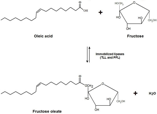 - Khaled, N.; Montet, D.; Pina, M.; Graille, J. Fructose oleate synthesis in a fixed catalyst bed reactor. Biotechnol. Lett. 1991, 13, 167–172. [Google Scholar] [CrossRef]