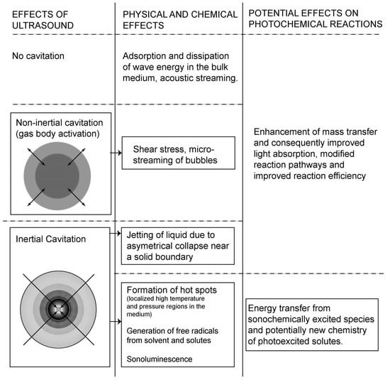 - Toma, S.; Gaplovsky, A.; Luche, J.L. The effect of ultrasound on photochemical reactions. Ultrason. Sonochem. 2001, 8, 201–207. [Google Scholar] [CrossRef]
