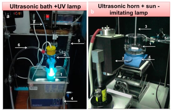 - Magdziarz, A.; Colmenares, J.C.; Chernyayeva, O.; Łomot, D.; Sobczak, K. Sonication and light irradiation as green energy sources simultaneously implemented in the synthesis of Pd-Fe- and Pt-Fe-doped TiO2-based photocatalysts. J. Mol. Catal. A: Chem 2016, 425, 1–9. [Google Scholar] [CrossRef]