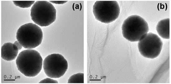 The TEM images of (a) amino Fe3O4 nanoparticles and (b) MGO-laccase.
