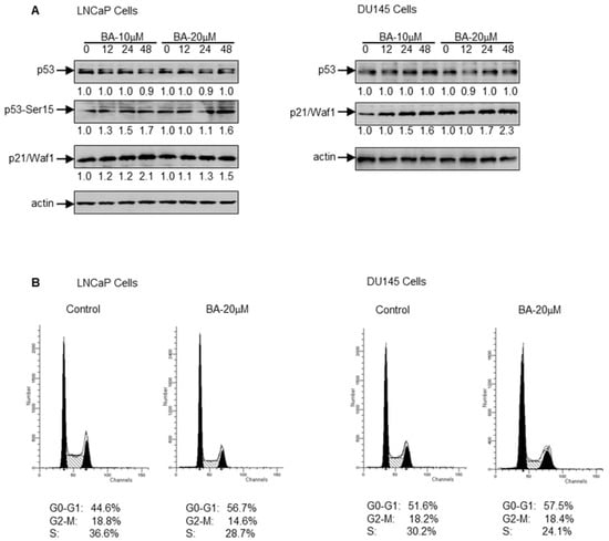 2.2. BA Induces p21/Waf1 in a p53-Dependent and Independent Manner to Cause G1 Cell Cycle Arrest in Prostate Cancer Cells