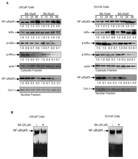 2.4. BA-Mediated Inhibition of NF-κB Pathway in Prostate Cancer Cells